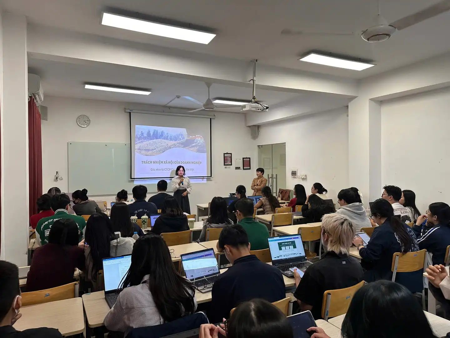 Trong khuôn khổ chương trình đào tạo Quản trị Kinh doanh của Trường Kinh tế, Đại học Quốc gia Hà Nội, Công ty Cổ phần Chứng khoán Bảo Việt (BVSC) đã có buổi chia sẻ chuyên đề “Trách nhiệm xã hội của doanh nghiệp” . Đại diện BVSC, Bà Bùi Thị Mai Hiên – Giám đốc Hoạt động – đã mang đến những góc nhìn thực tế và sâu sắc trong quá trình triển khai Trách nhiệm xã hội doanh nghiệp (CSR), đặc biệt là việc tích hợp CSR vào Chiến lược phát triển bền vững ESG (Môi trường – Xã hội – Quản trị) mà BVSC đã và đang triển khai.