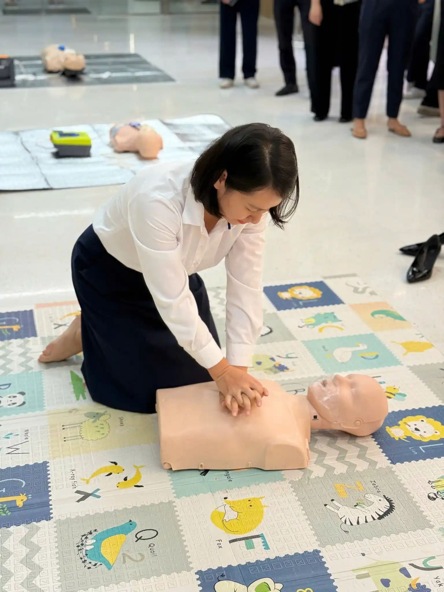 Phần thực hành diễn ra sôi nổi khi các cán bộ trực tiếp tập luyện với hình nộm, dưới sự hướng dẫn chi tiết của bác sĩ và các nhân viên y tế. Không chỉ là những động tác kỹ thuật, đây còn là bài học ý nghĩa về tinh thần chủ động, bình tĩnh trong tình huống khẩn cấp.