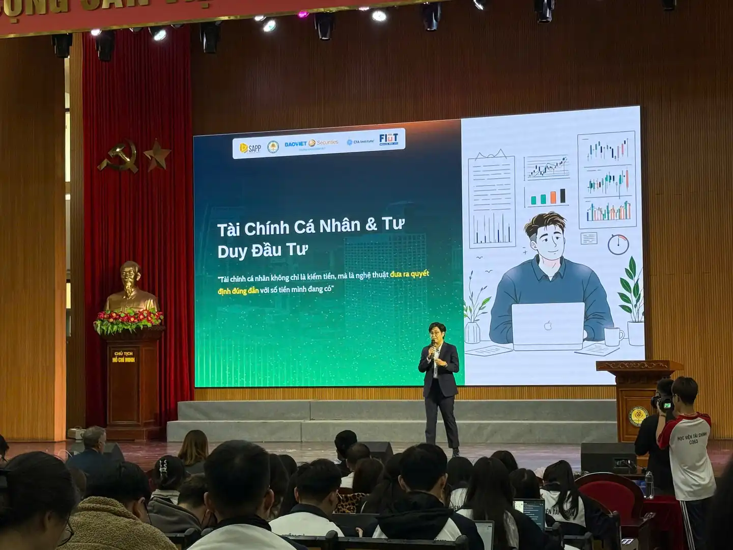 Ngoài ra, tại sự kiện, các diễn giả đồng thời chia sẻ tổng quan thị trường chứng khoán Việt Nam, giải mã các lớp tài sản và xây dựng tư duy đầu tư chuyên nghiệp từ sớm dành cho các bạn Sinh viên. Song song định hướng lộ trình công việc, những cơ hội cũng như thách thức nghề nghiệp mở ra khi Việt Nam tiến gần hơn tới việc được nâng hạng Emerging Market.