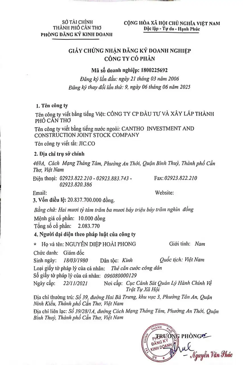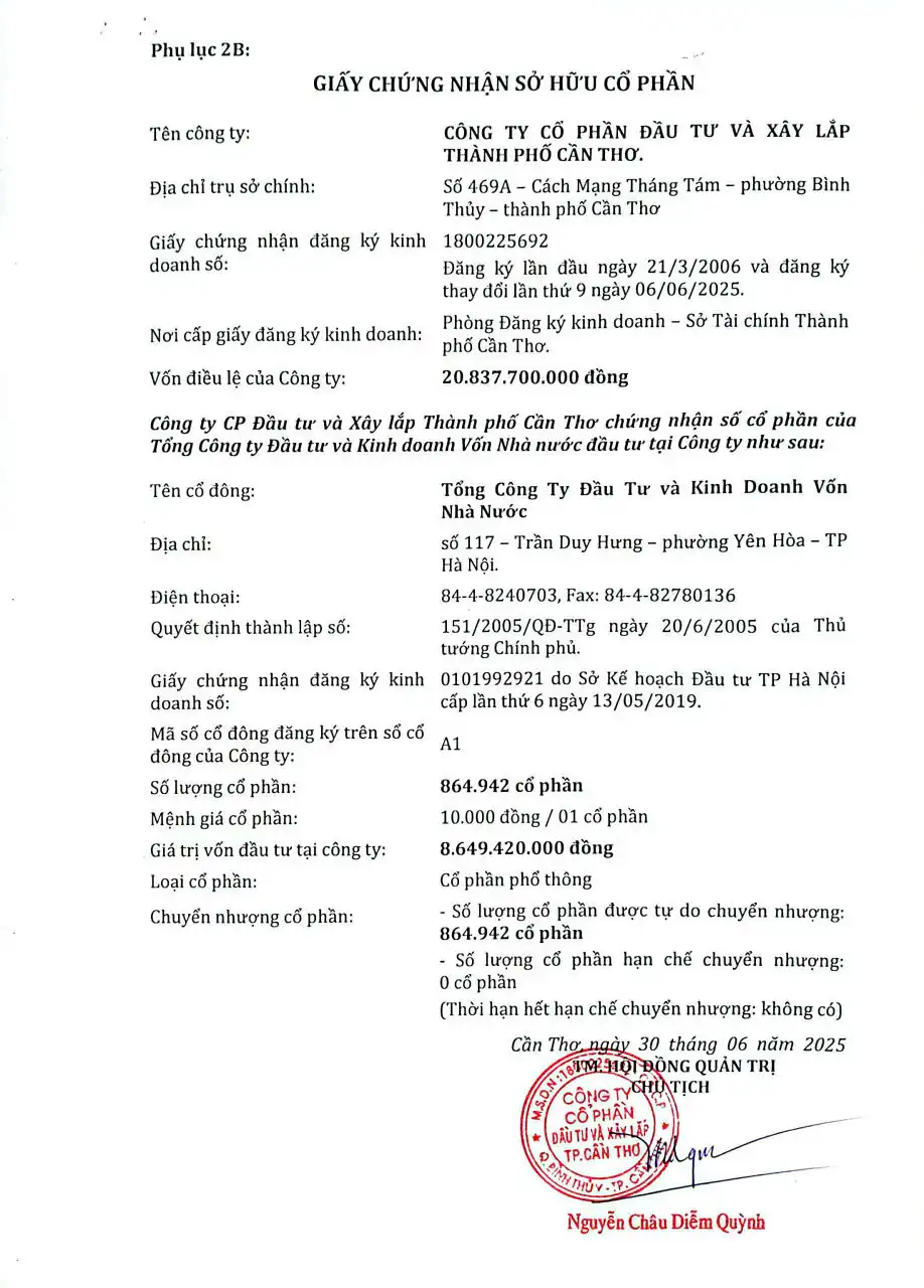 Cổ phần Công ty Cổ phần Đầu tư và Xây lắp Thành phố Cần Thơ |