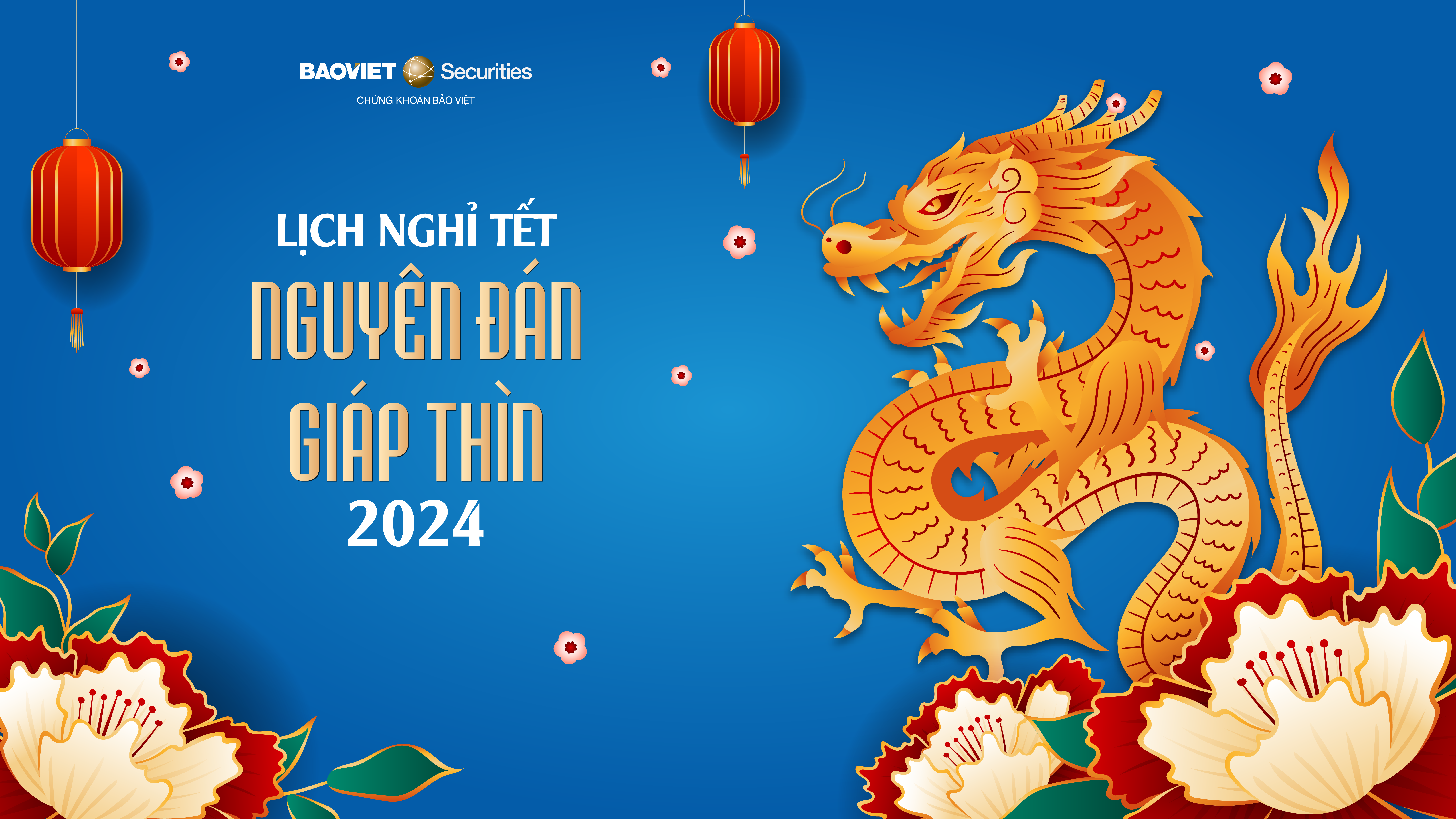 Chứng khoán Bảo Việt xin trân trọng thông báo tới Quý Khách hàng, Đối tác & Nhà đầu tư lịch nghỉ Tết Giáp Thìn 2024 như sau: