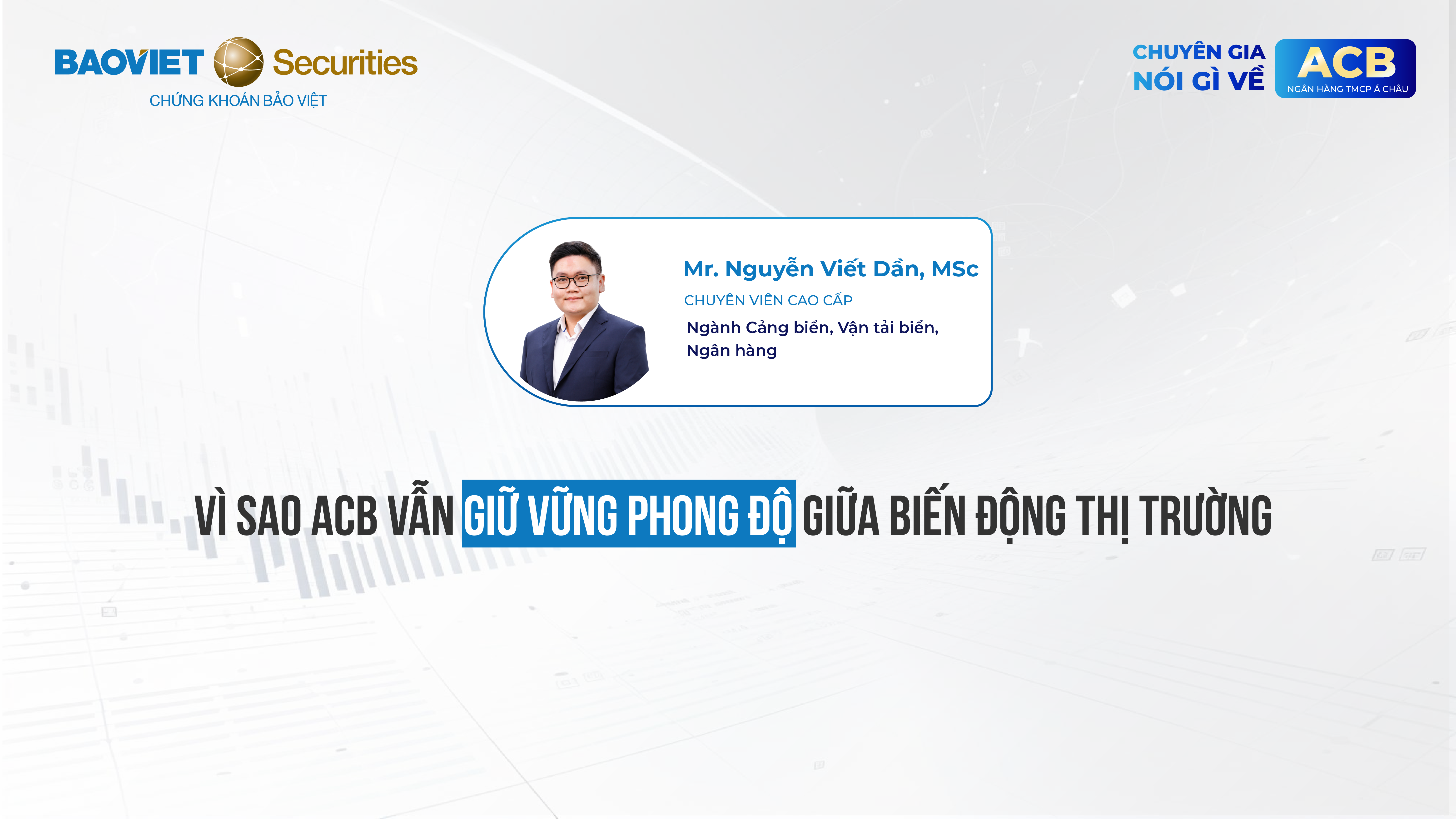 Hãy cùng lắng nghe phân tích chuyên sâu của Ông Nguyễn Viết Dần – Chuyên viên phân tích ngành Ngân hàng, Cảng biển & Vận tải biển tại BVSC trong video dưới đây để hiểu rõ hơn về điểm nhấn đầu tư, dự báo kết quả kinh doanh trong ngắn hạn và định giá mã cổ phiếu ACB.